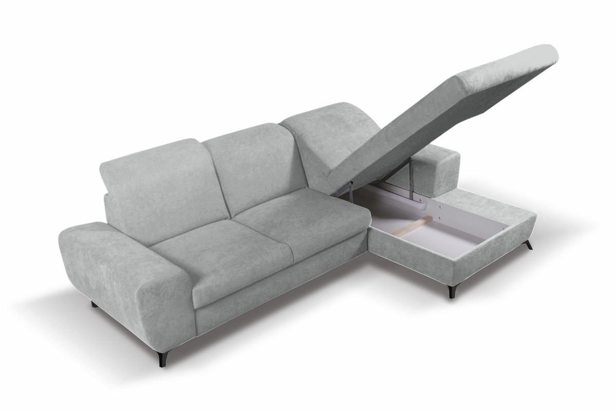 • Rozkładany narożnik tapicerowany ALTA prawy z pojemnikiem, w kształcie L, szary
