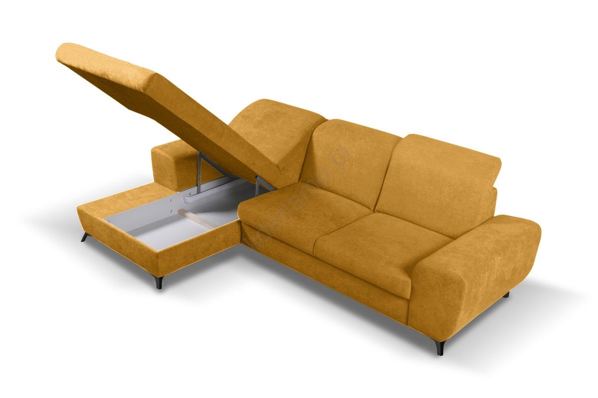 • Rozkładany narożnik tapicerowany z pojemnikiem w kształcie L ALTA lewy żółty