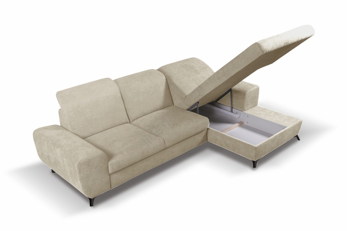 • Rozkładany narożnik tapicerowany ALTA z pojemnikiem, lewy, beżowy