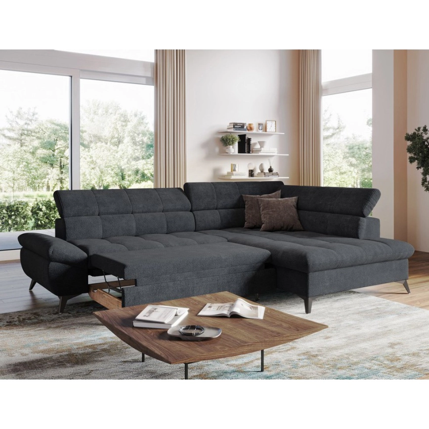 Rozkładany narożnik w kształcie litery L MARANO prawy czarny