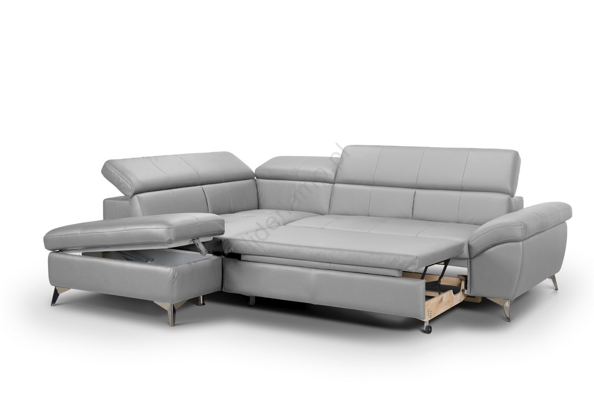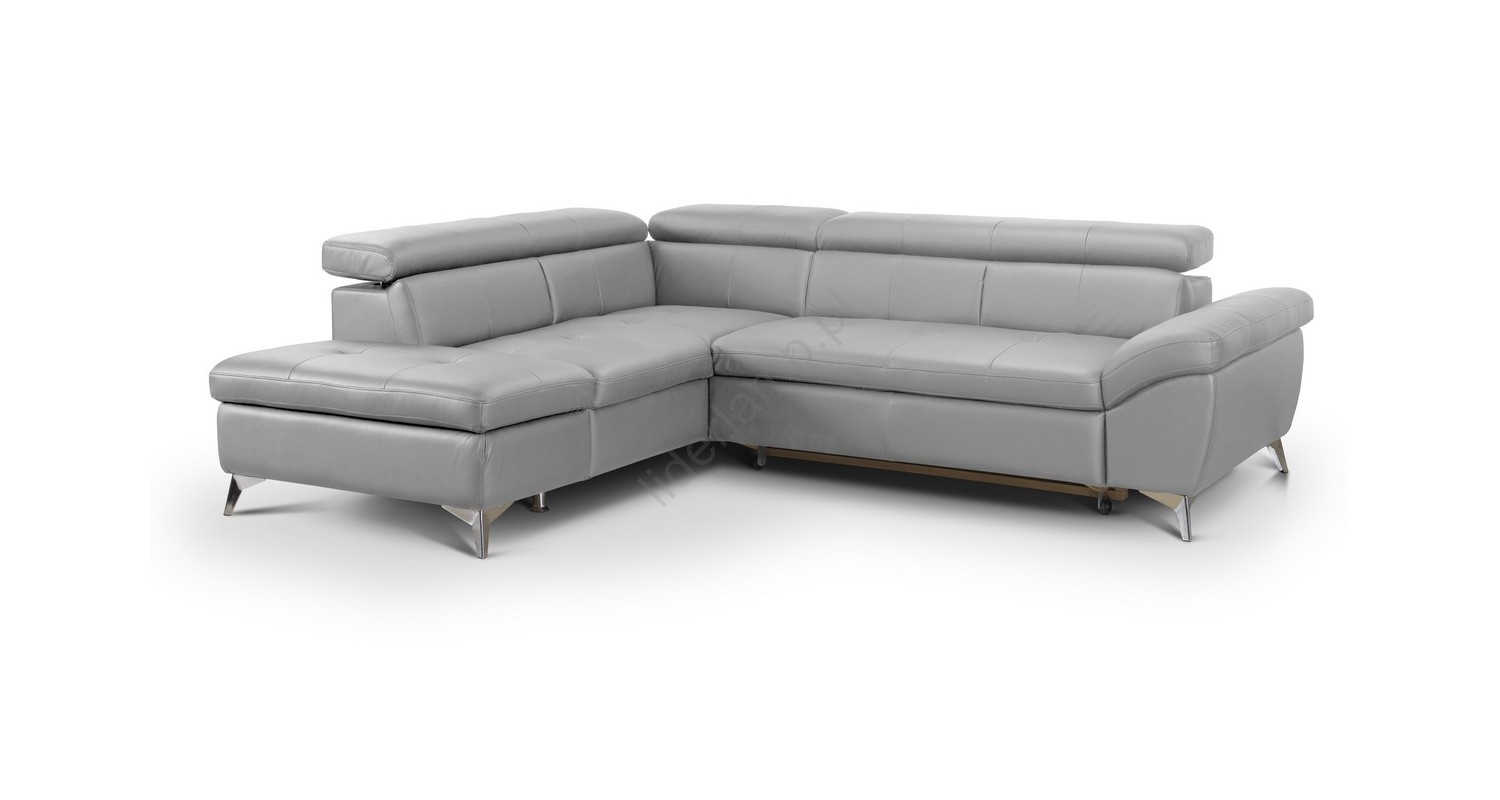• Rozkładana narożna skórzana sofa w kształcie litery L SALERNO II prawa szara