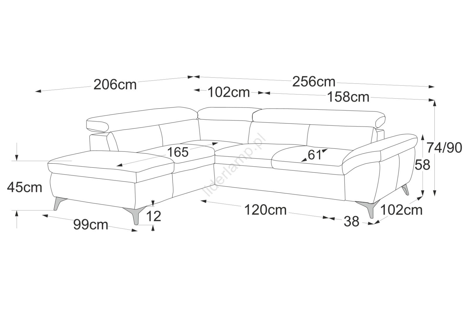 • Metalowe nogi o wysokości 12 cm nadają nowoczesny wygląd i zapewniają stabilność.