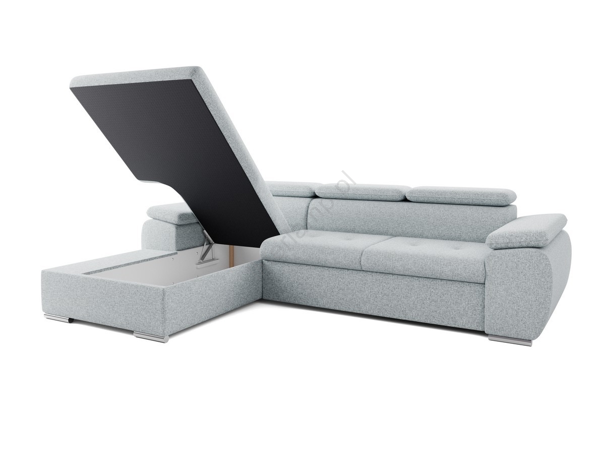 • Rozkładany narożnik w układzie L z pojemnikiem PADUA szary lewy