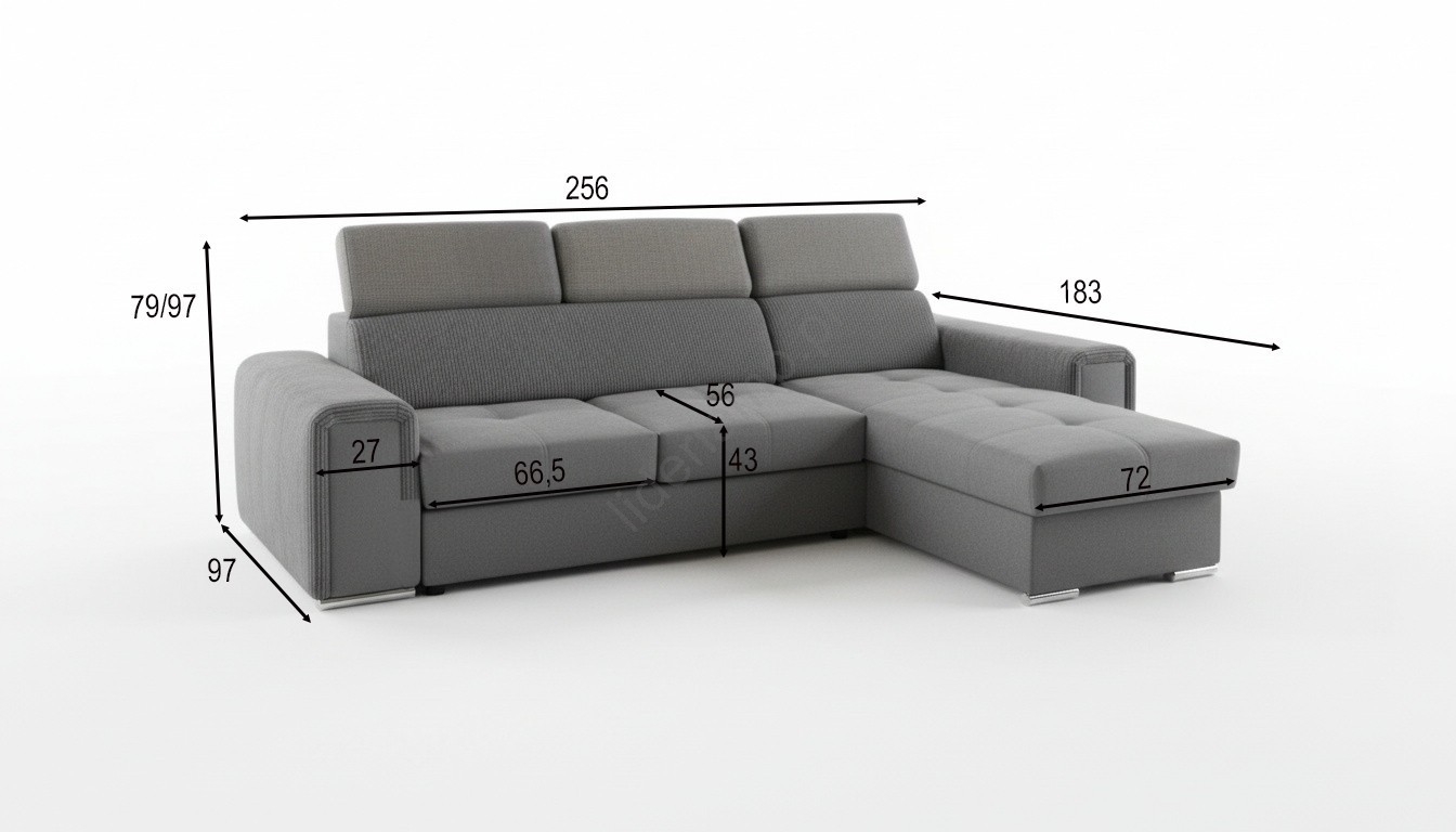 • Uniwersalny narożnik rozkładany w kształcie L z pojemnikiem SALVADA ciemnoszary