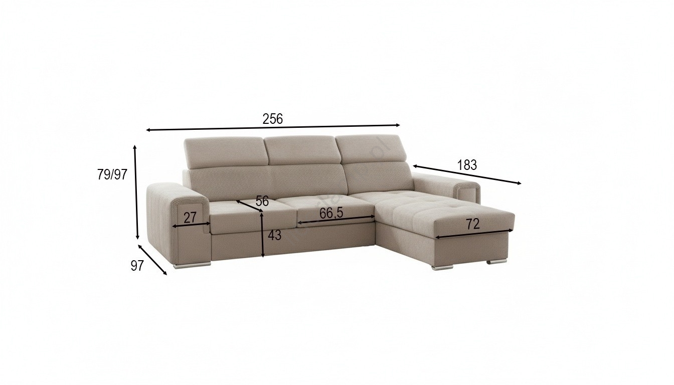 • Uniwersalny narożnik rozkładany w kształcie L z pojemnikiem na pościel SALVADA beżowy