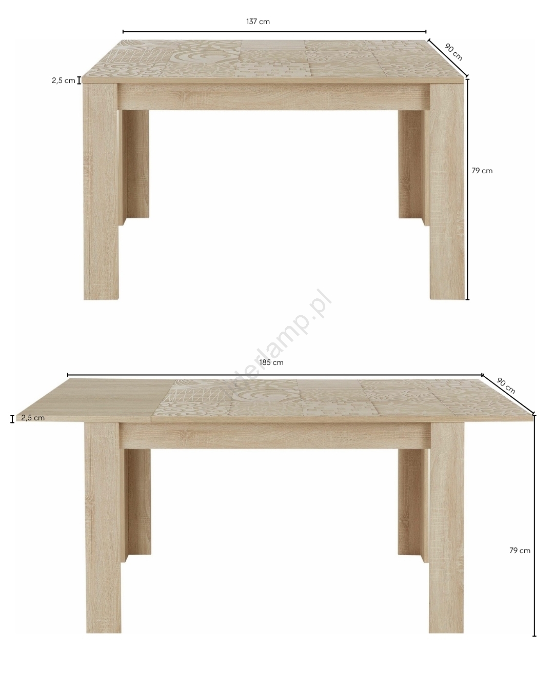 • Wymiary stołu rozłożonego: 185 x 90 cm