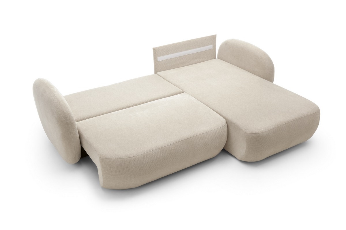 • Narożna rozkładana sofa z pojemnikiem w kształcie L OLBIA, prawostronna, beżowa
