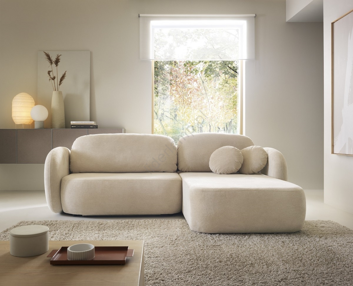 • Narożnik rozkładany z pojemnikiem w układzie L OLBIA lewy beżowy