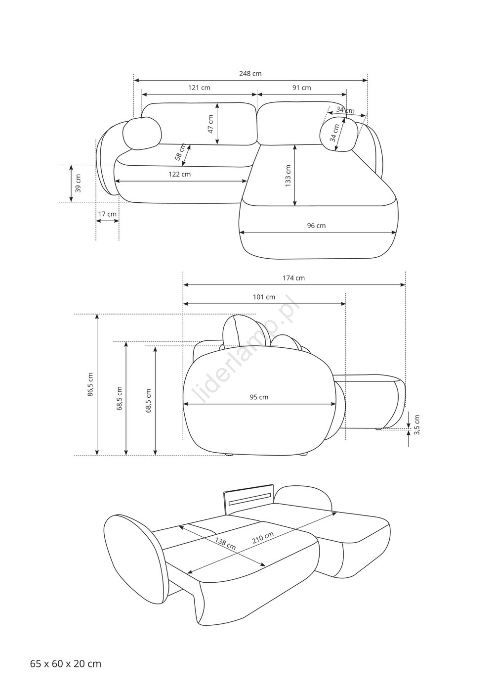 • Pudełko nr 1: 178 x 100 x 40 cm (60,5 kg).