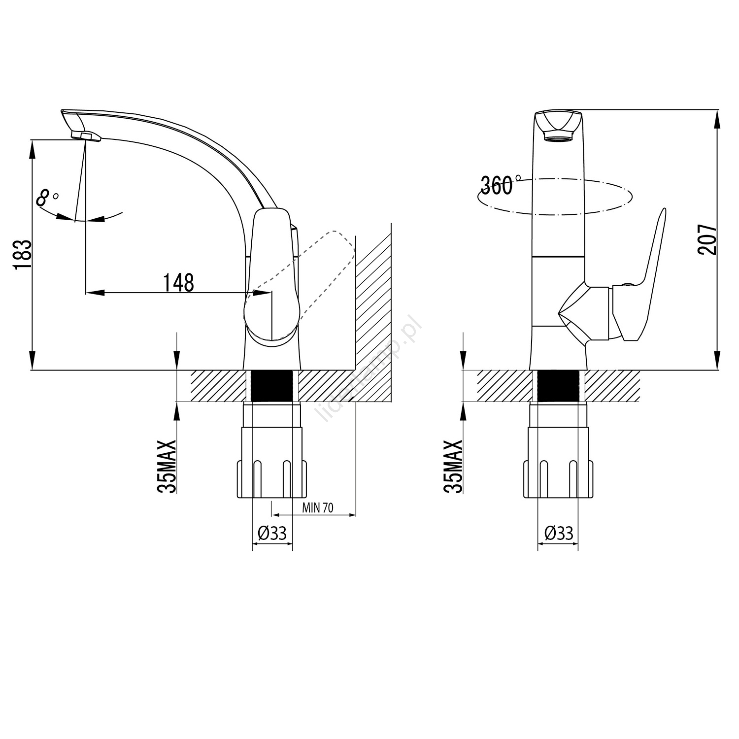 • W serii dostępne są także specjalne wysokie baterie przeznaczone do montażu na blacie.