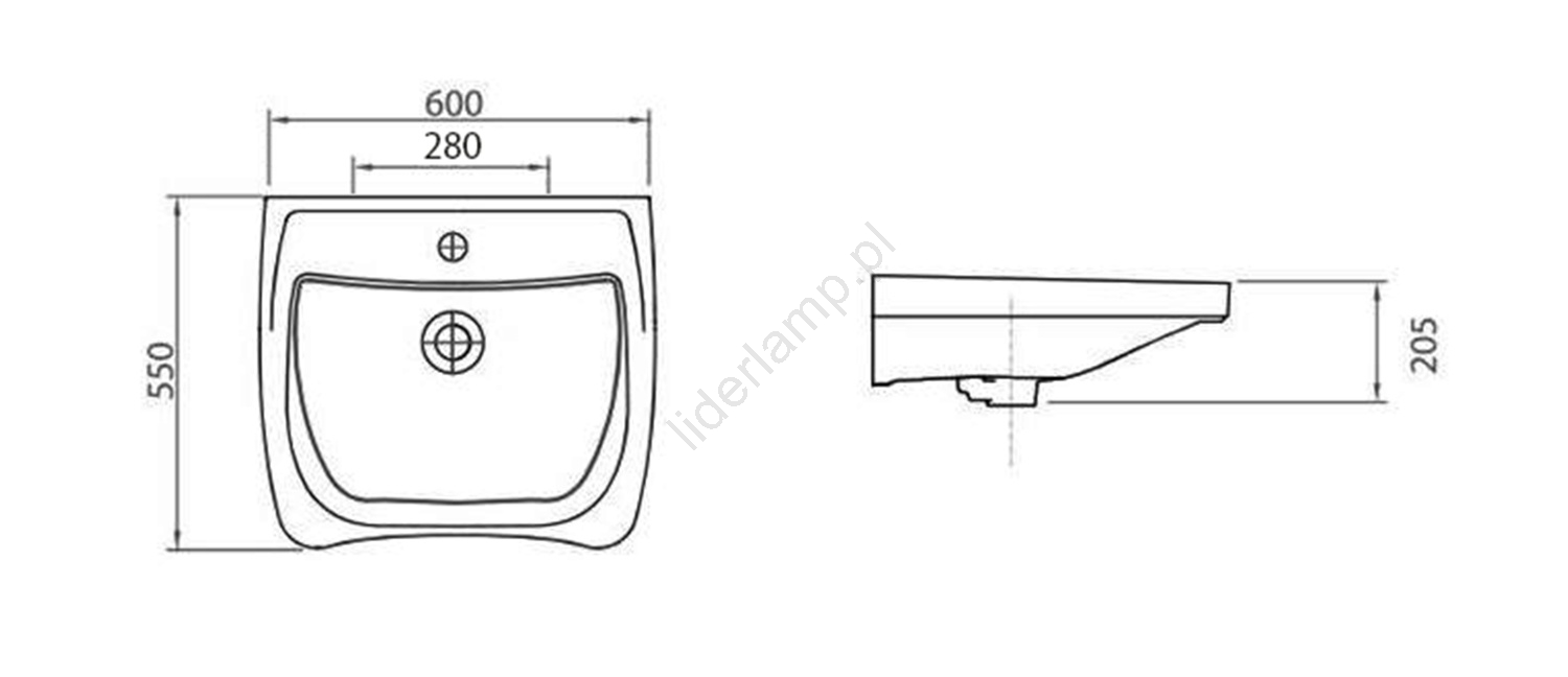 • Ma wymiary 600x550 mm i jest w kolorze białym.