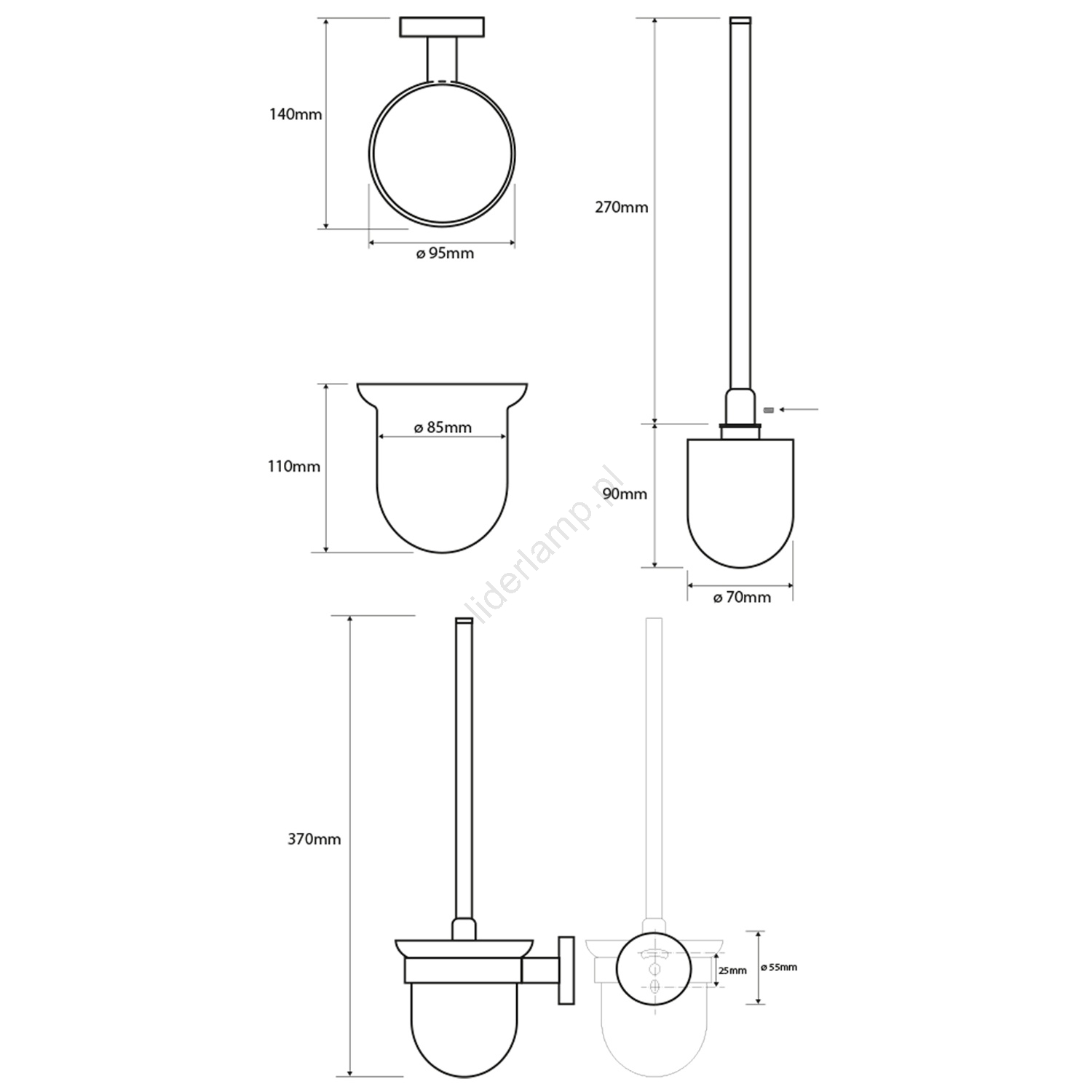 • Wisząca szczotka do WC wykonana z mlecznego szkła.