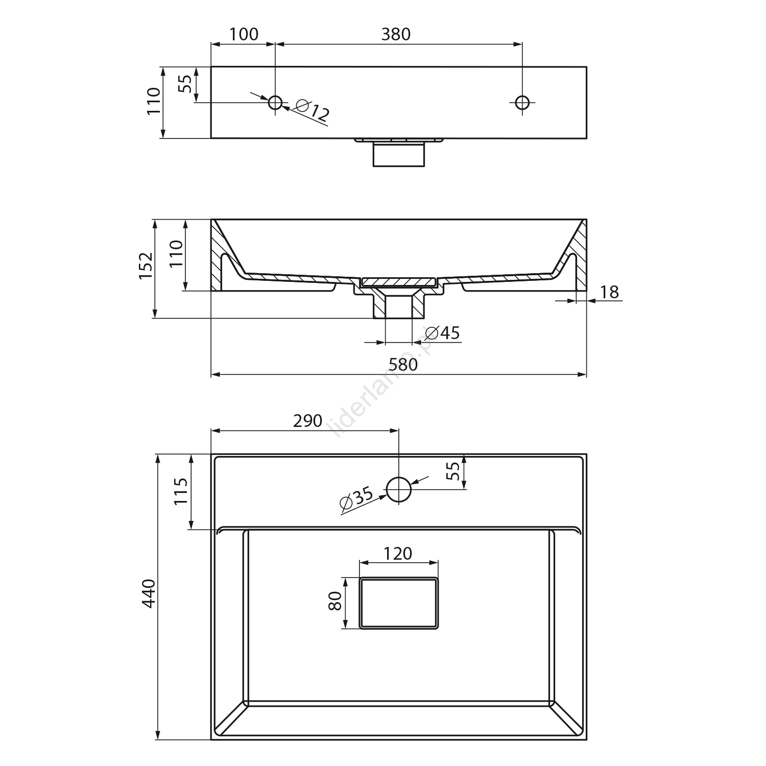 • Ma wymiary 580x440 mm i wysokość 110 mm.