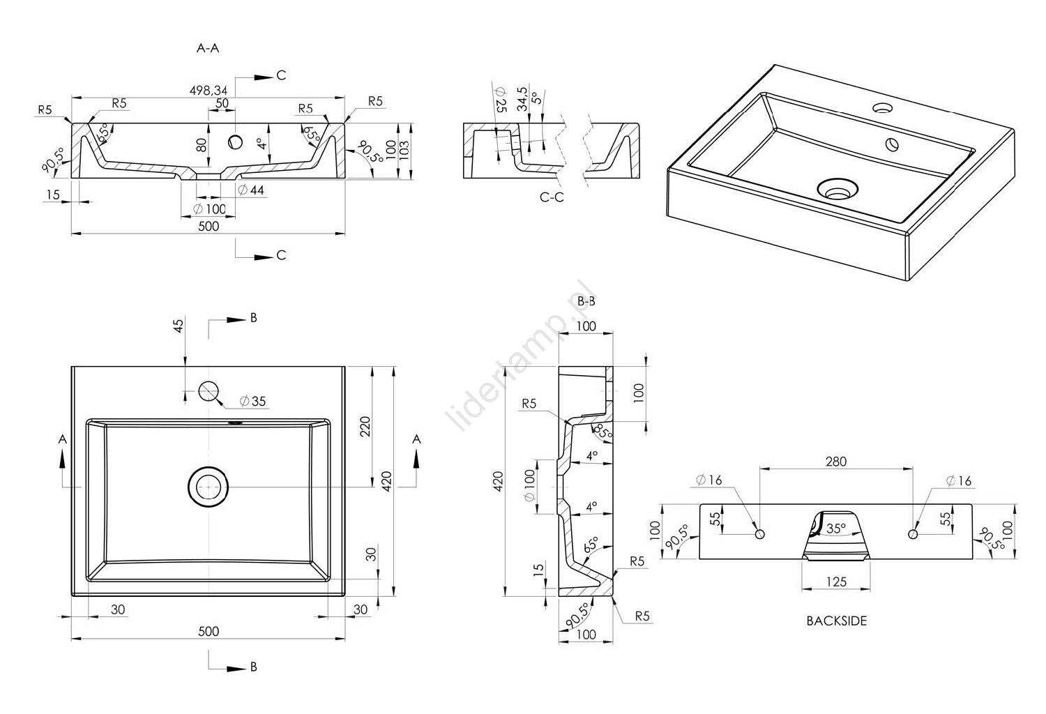 • Umywalka wykonana z odlewanego marmuru.