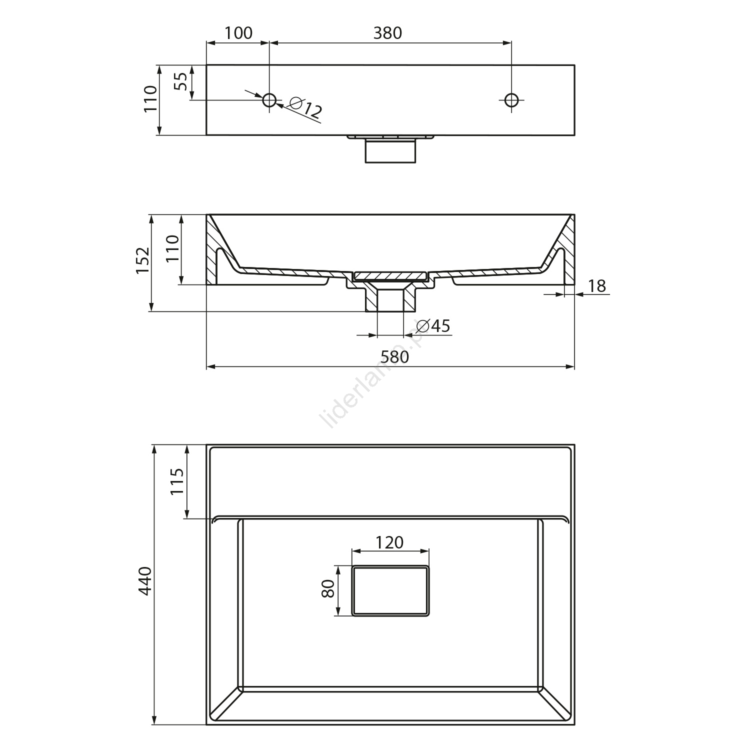 • Ma wymiary 580x440 mm i wysokość 110 mm.