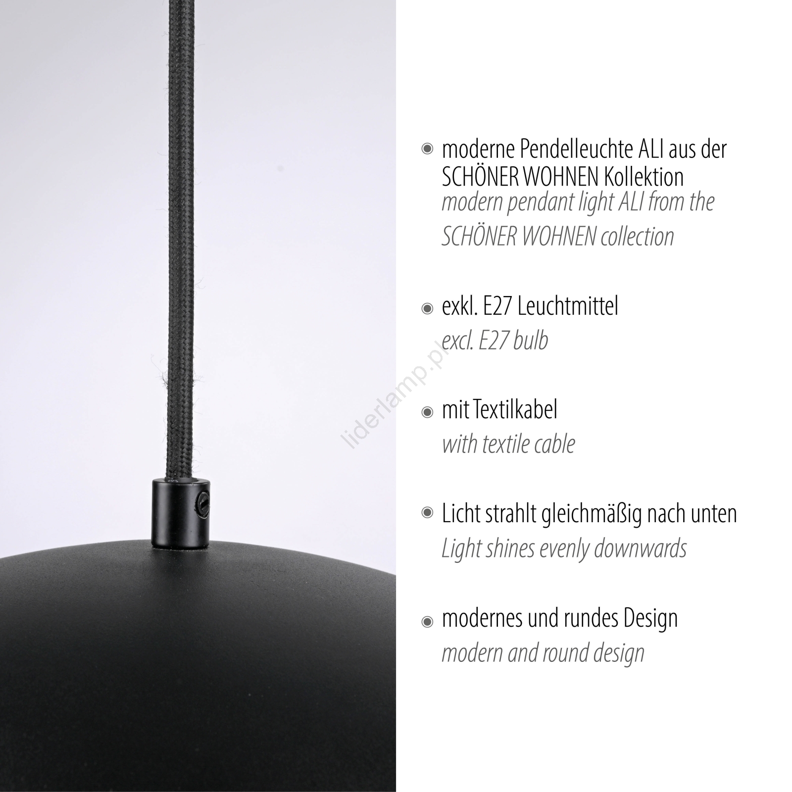 • Schöner Wohnen 11728-18 - Lampa wisząca ALI na przewodzie 1xE27/25W/230V, średnica 38 cm, czarna