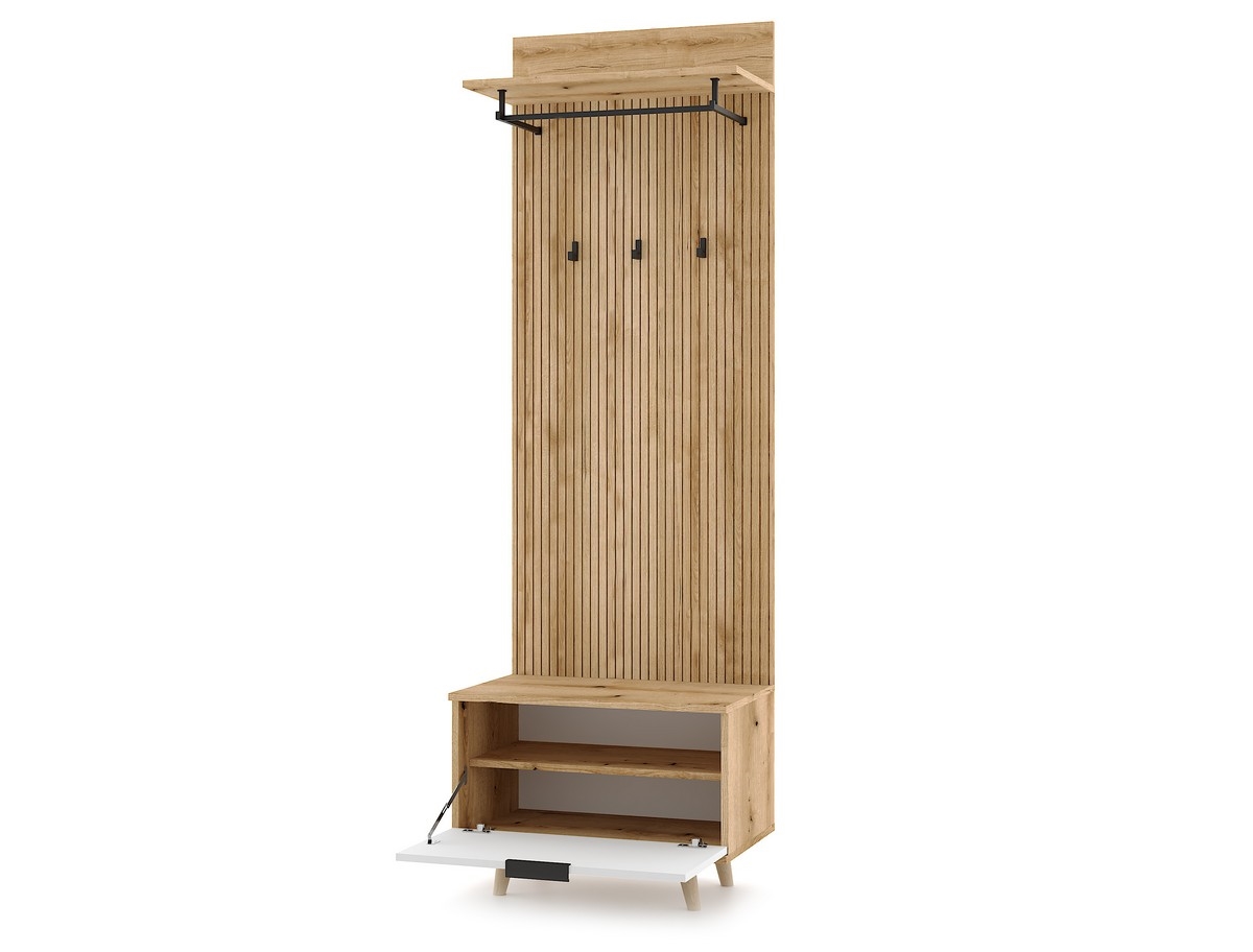 • Pod nim znajduje się zamknięta szafka na obuwie, akcesoria lub inne codzienne niezbędniki.