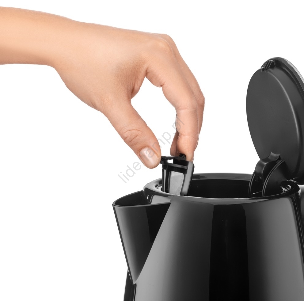 • Dla zwiększenia bezpieczeństwa czajnik posiada m.in. zabezpieczenie przed przegrzaniem przy włączeniu bez wody, wskaźnik świetlny pracy, blokadę pokrywki oraz funkcję automatycznego wyłączenia po zagotowaniu.