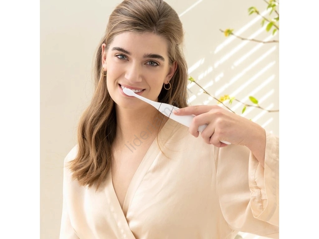 • Dostarczany z 2 końcówkami szczoteczki (1 standardowa/średnio twarda i 1 miękka) z włóknami Dupont.