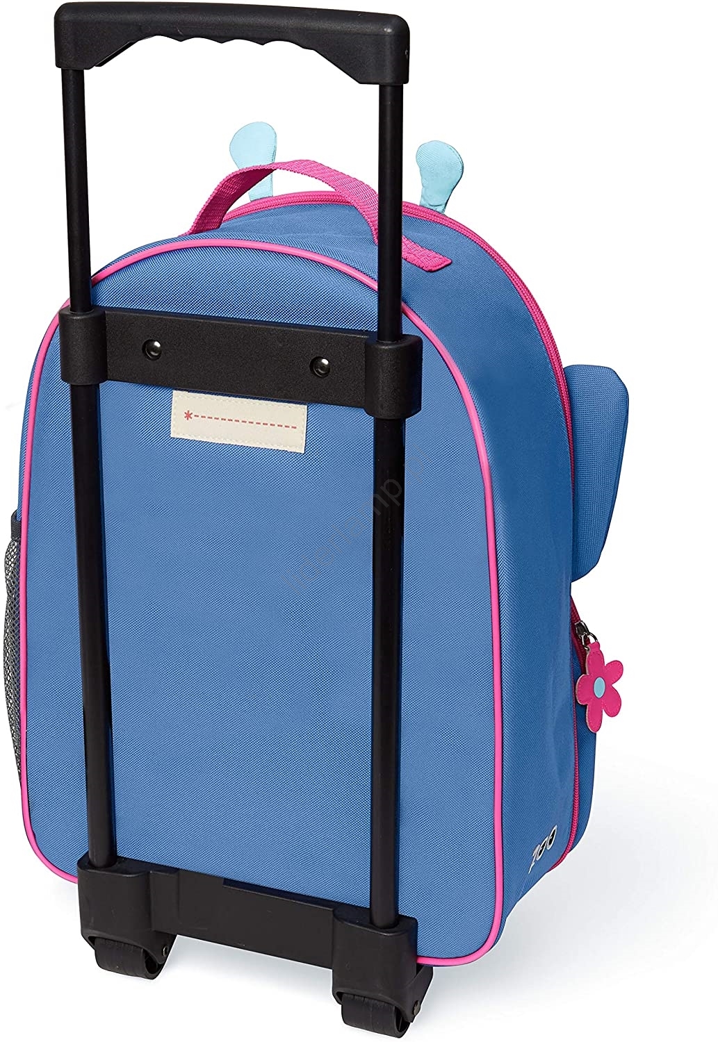 • Z tyłu walizki znajduje się również etykieta do napisania imienia, aby nie zgubiło się ono wśród innych.