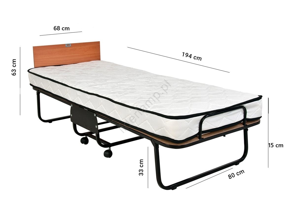 • Łóżko składane jest wyposażone w zagłówek i materac sprężynowy o grubości 15 cm, który zapewnia maksymalny komfort dla spokojnego snu.