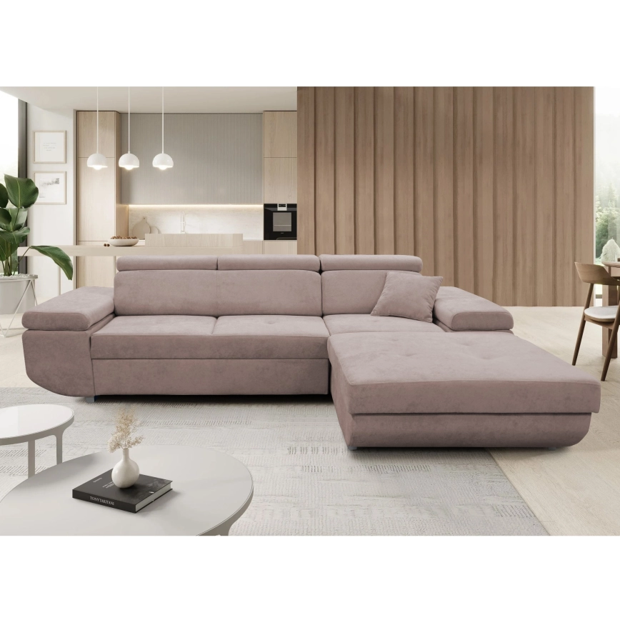 • Narożnik rozkładany z pojemnikiem w układzie L CASTELO, lewy, beżowy