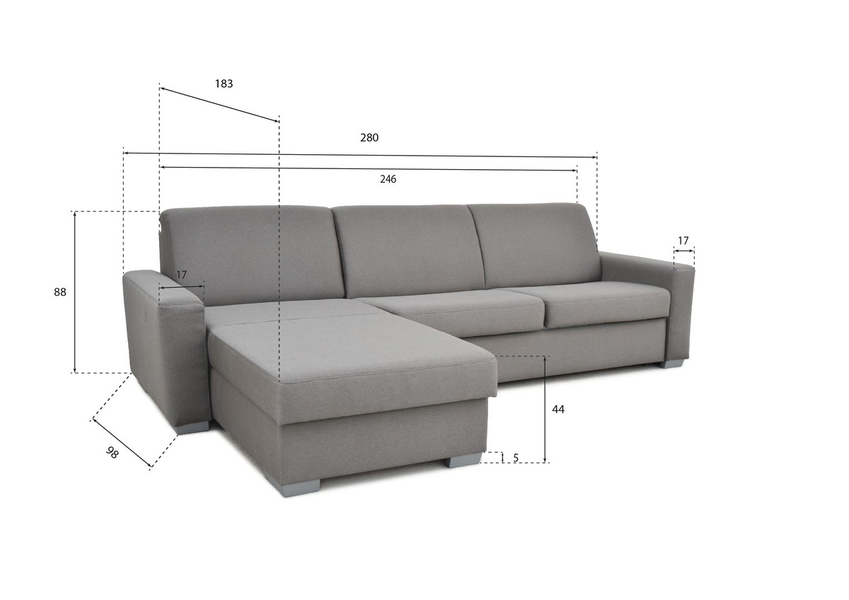 • Rozkładany narożnik do codziennego spania z pojemnikiem na pościel w kształcie litery L LEKA lewy szary