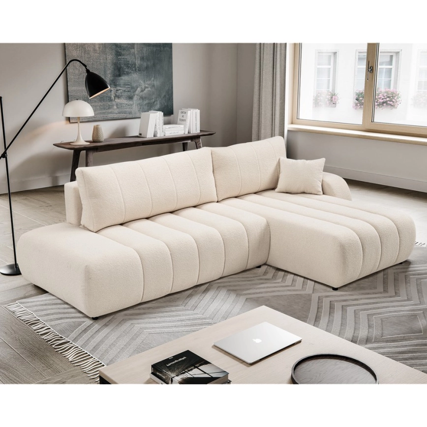 • Rozkładany narożnik z pojemnikiem w układzie L DESIO, lewy, beżowy