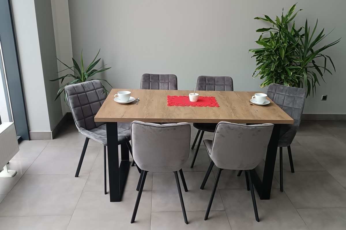 • Wykończenie w dębowym wyglądzie nadaje stołowi nowoczesny, a jednocześnie przytulny charakter.
