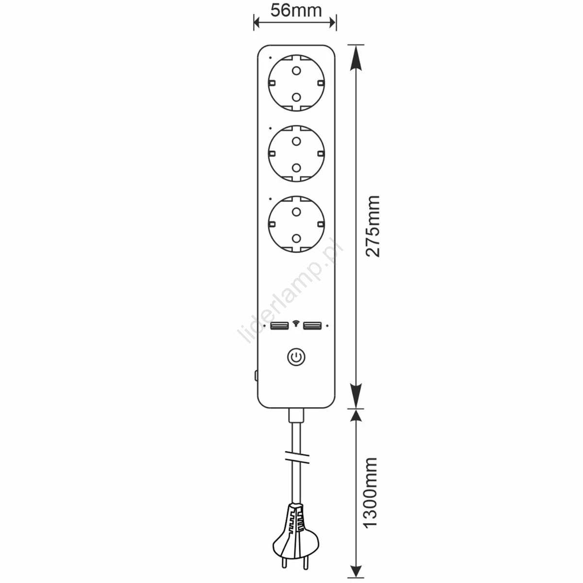 • Liczba gniazdek: 3x gniazdko 230 V + 2x USB 5 V 2,1 A.