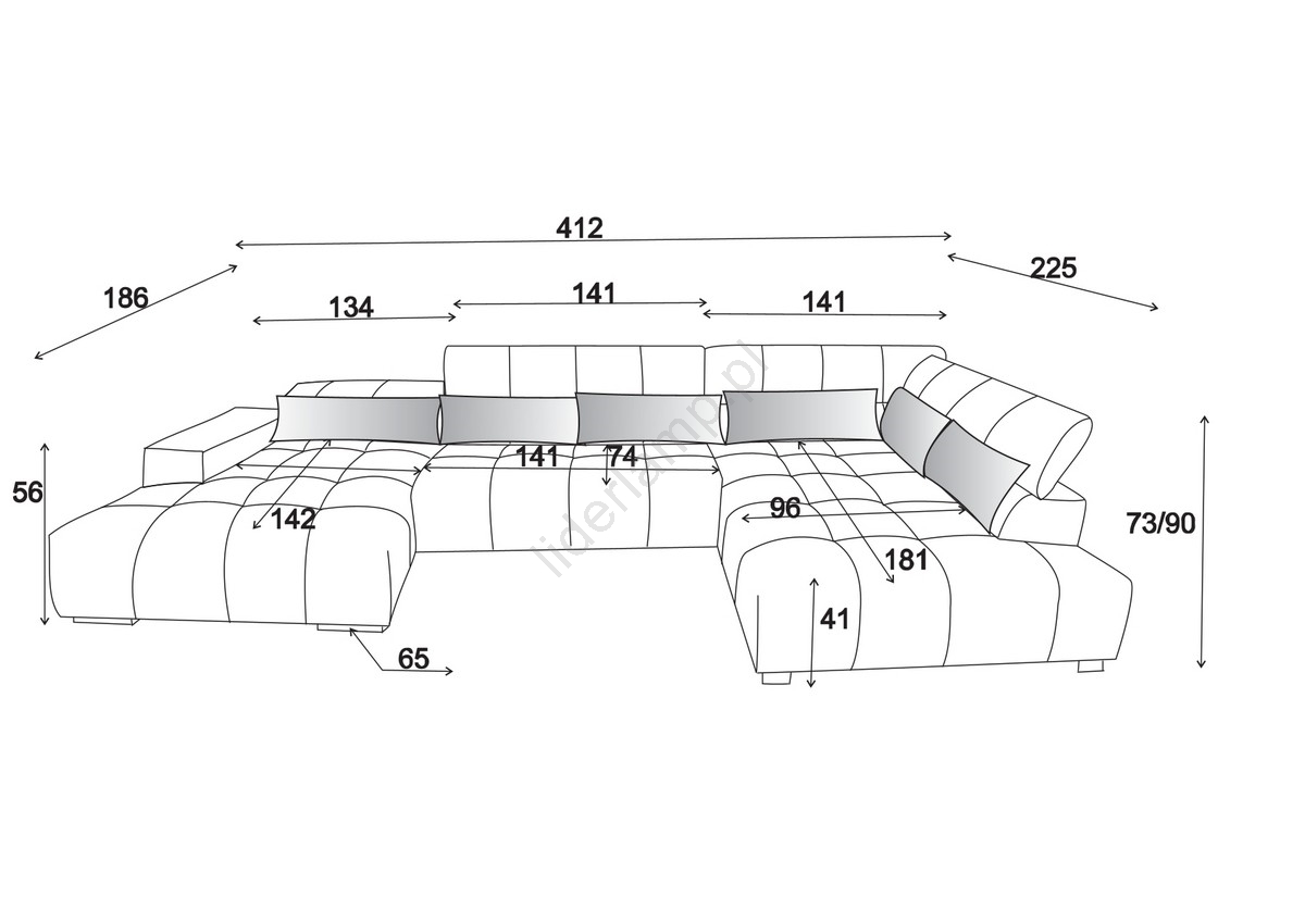 • Nowoczesny narożnik w kształcie litery U łączy stylowy design z maksymalnym komfortem.