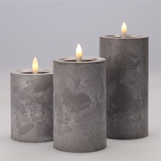 • Zestaw świec LED z naturalnie migoczącym płomieniem i dekoracją szarego marmuru.