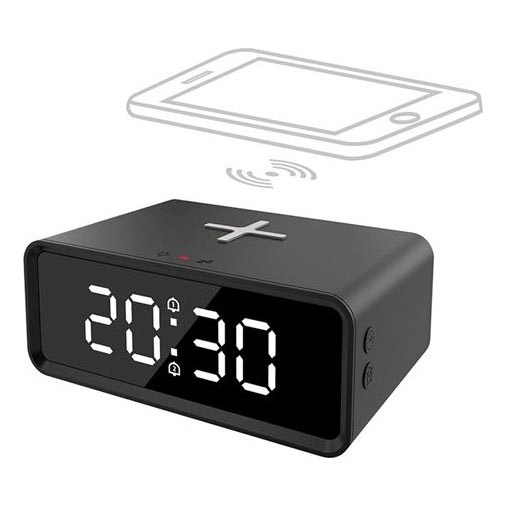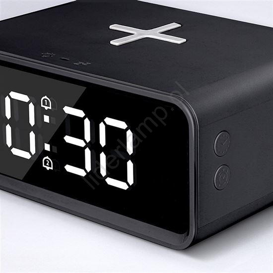Cyfrowy zegar z bezprzewodową ładowarką Qi 230V/CR2032 czarny
