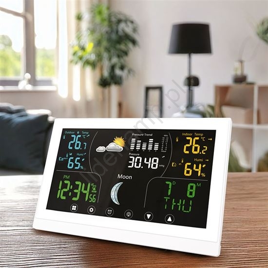 Stacja pogodowa z kolorowym wyświetlaczem 5V/2xAAA, biała