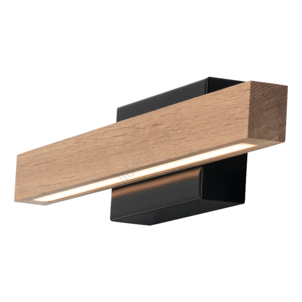 • Nowoczesna lampa ścienna łącząca materiały: drewno dębowe, metal.