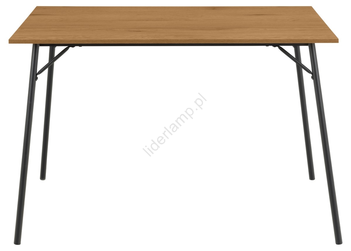• Prostokątny blat w wyglądzie dębu podtrzymują smukłe, czarne stalowe nogi.