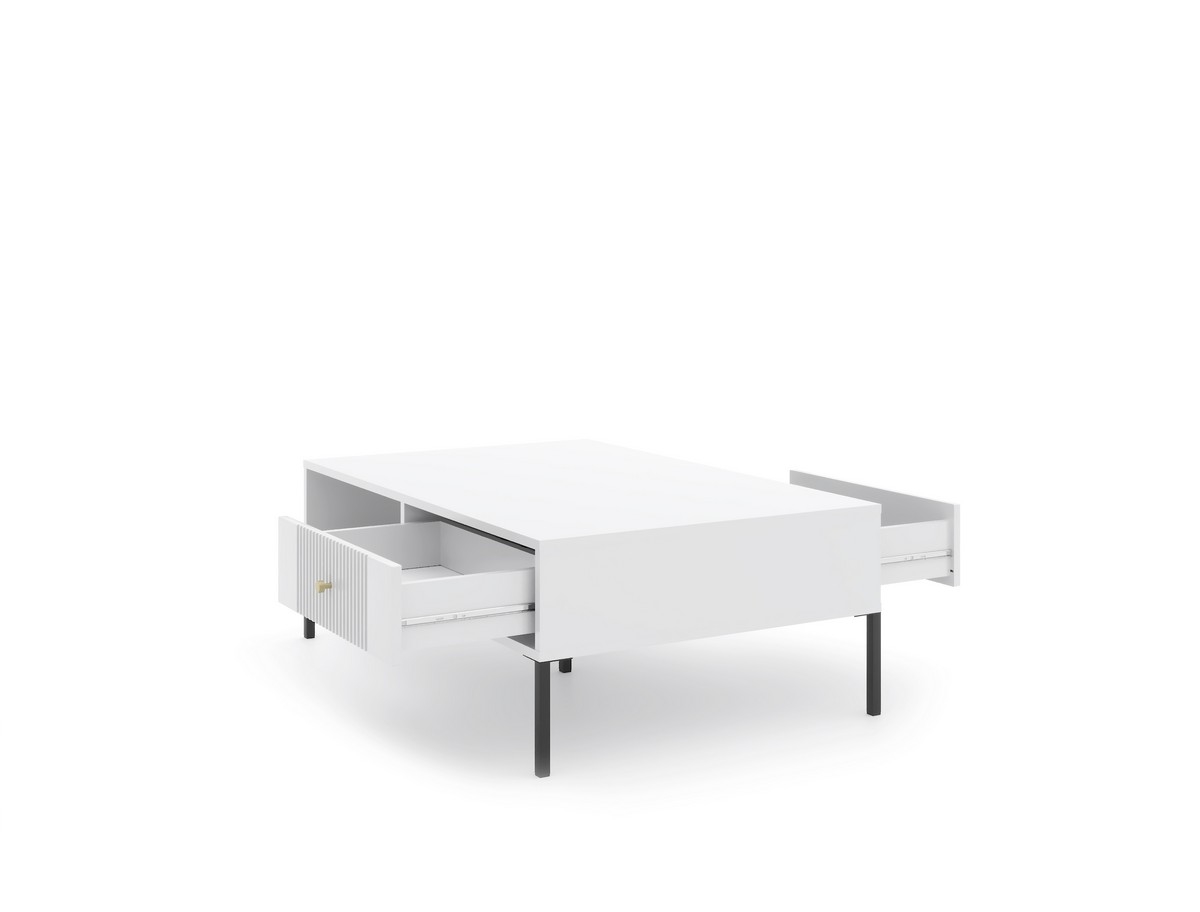 • Posiada dwie szuflady ozdobione pionowym żebrowaniem dla wyrafinowanego efektu wizualnego.