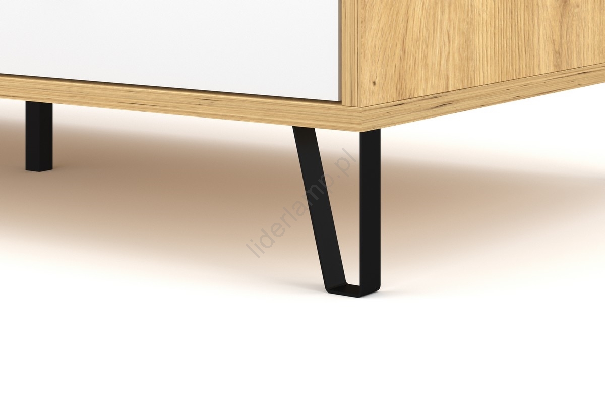 • Posiada dwie otwarte półki i dwie szuflady ozdobione pionowym żebrowaniem, co tworzy wyrafinowany efekt wizualny.