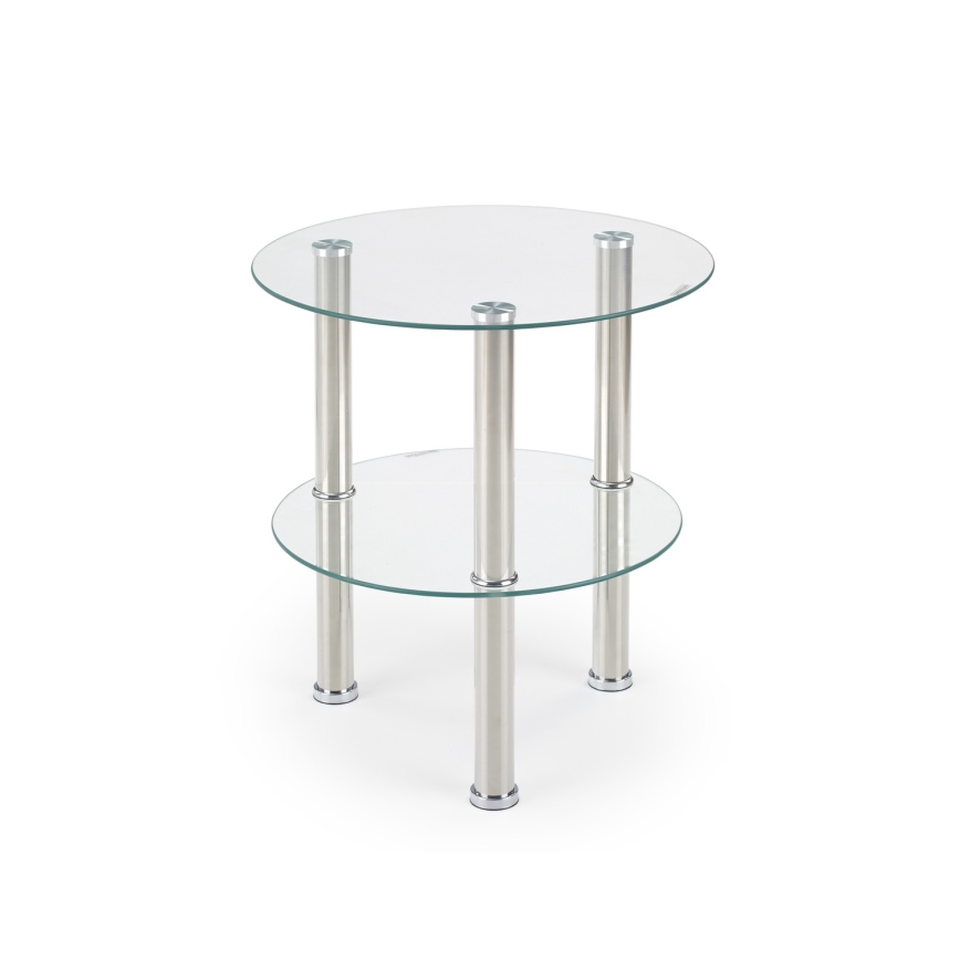 • Okrągłe blaty z przezroczystego szkła sprawiają, że mebel wydaje się lekki i optycznie nie obciąża przestrzeni.