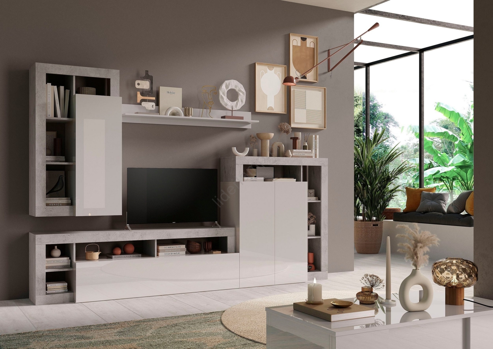 • Dolna półka i otwarte półki oferują przestrzeń na książki, dekoracje i potrzeby domowe.