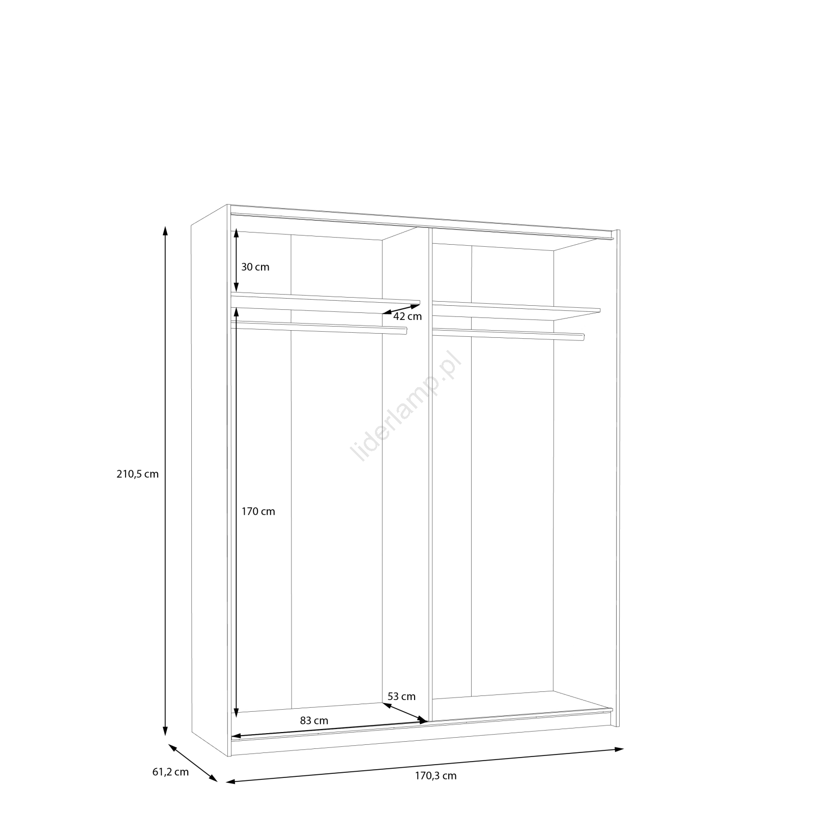 • Szafa wyposażona jest w drążki, półki oraz dużą przestrzeń do przechowywania ubrań, toreb i rzeczy sezonowych.