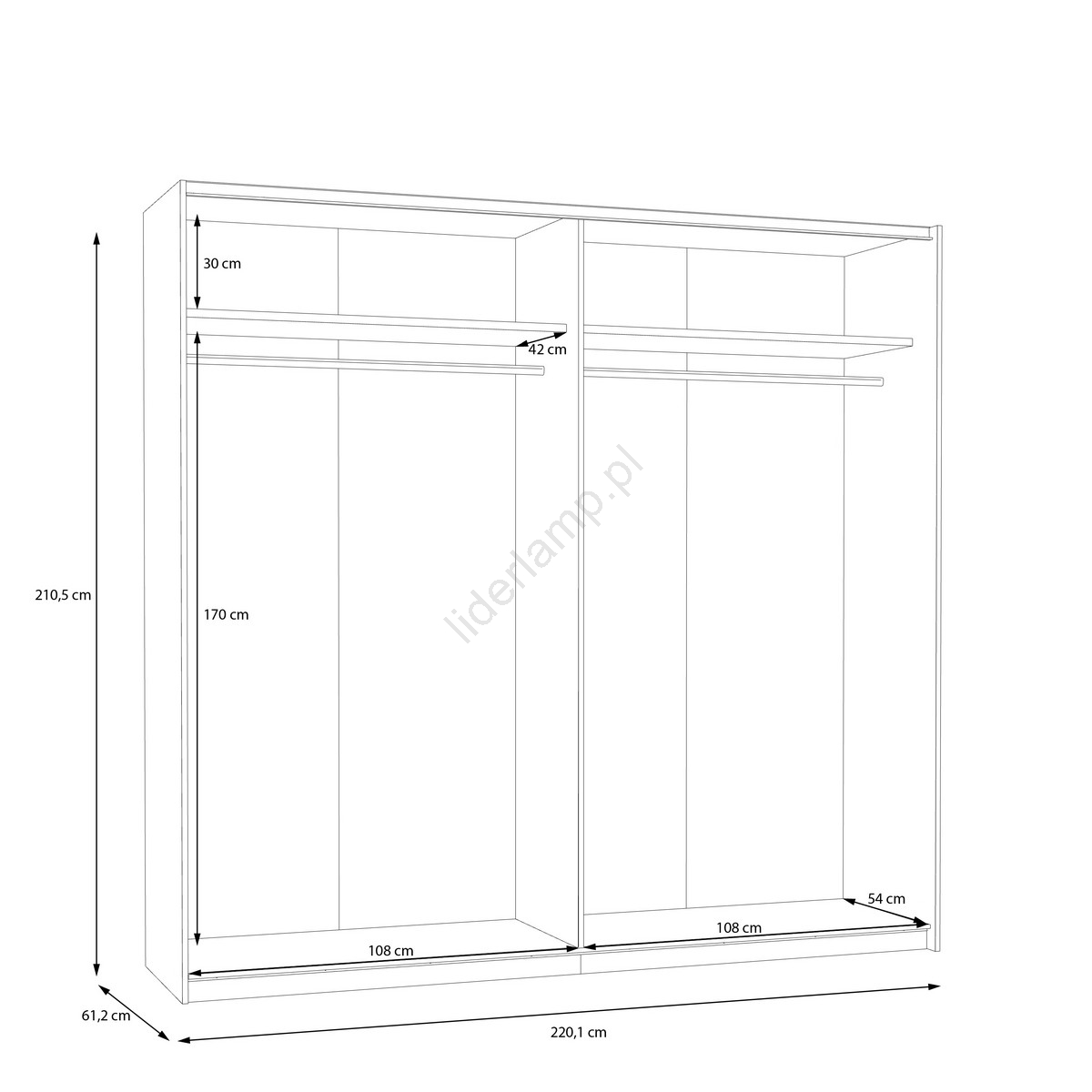 • Szafa wyposażona jest w drążki na wieszaki, półki oraz dużą przestrzeń do przechowywania na ubrania, torby i rzeczy sezonowe.