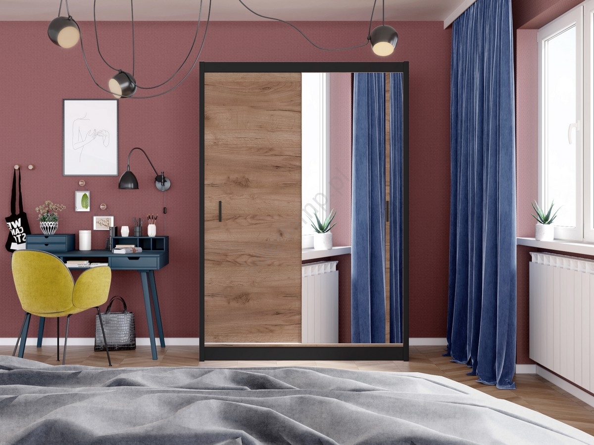 • Szafa z lustrem SANTINO 150x215 cm czarna/dąb craft