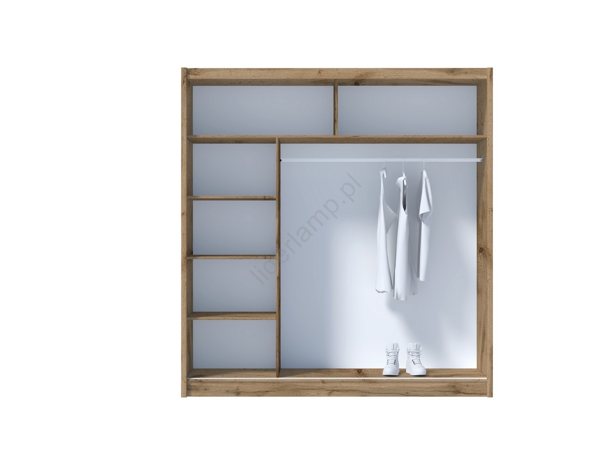 • Wprowadź do swojego domu urok eleganckiej i praktycznej szafy, która stawia na czyste linie, oszczędność miejsca oraz ponadczasowy design.
