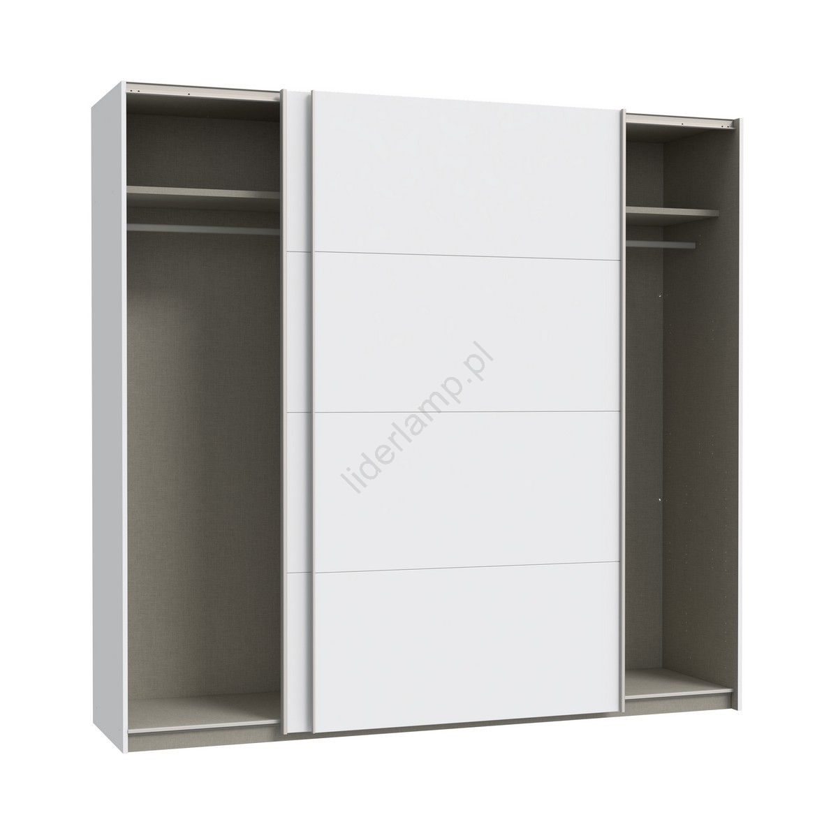 • Szafa wyposażona jest w drążki na wieszaki, półki oraz dużą przestrzeń do przechowywania na ubrania, torby i rzeczy sezonowe.