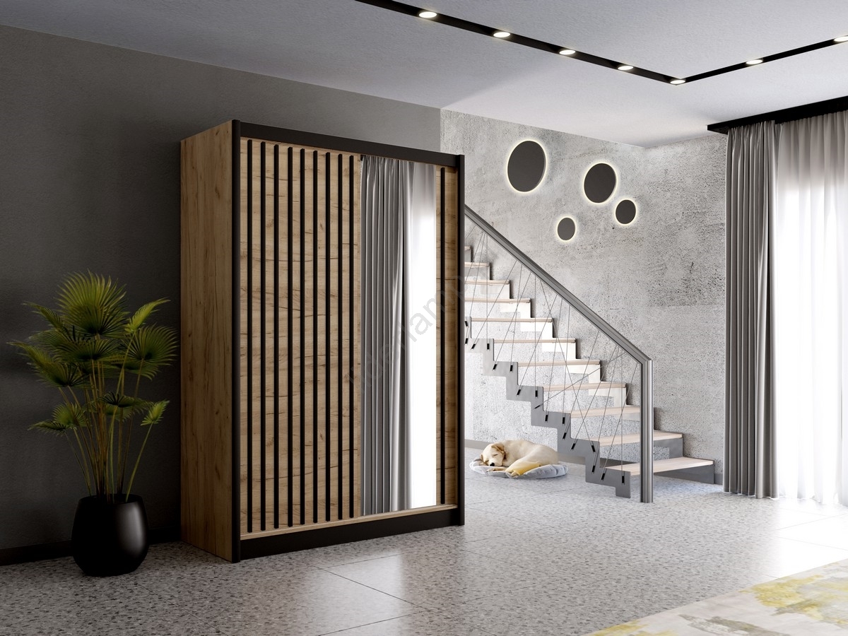 ReviewsWidget_ReviewsAboutUs Szafa z lustrem SANTINO 150x215 cm dąb craft/czarny | Liderlamp.pl