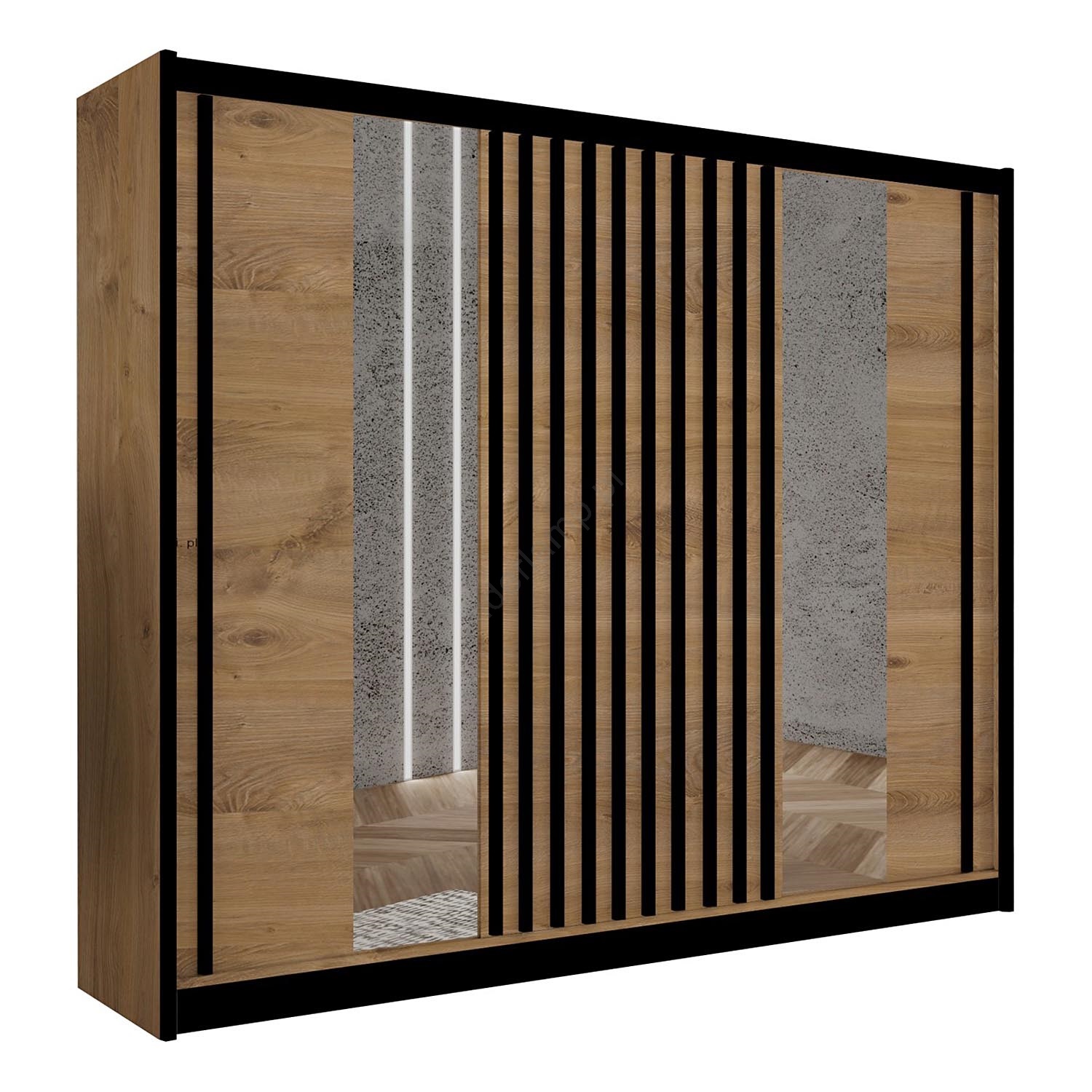 • Szafa z lustrem SANTINO 250x215 cm czarna/dąb craft