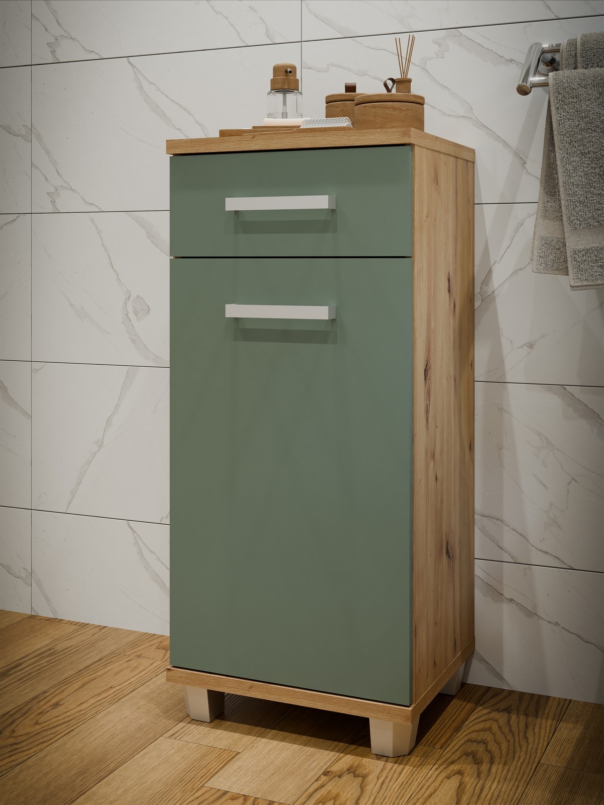 • Szafka łazienkowa VENOM zielona/dąb artisan