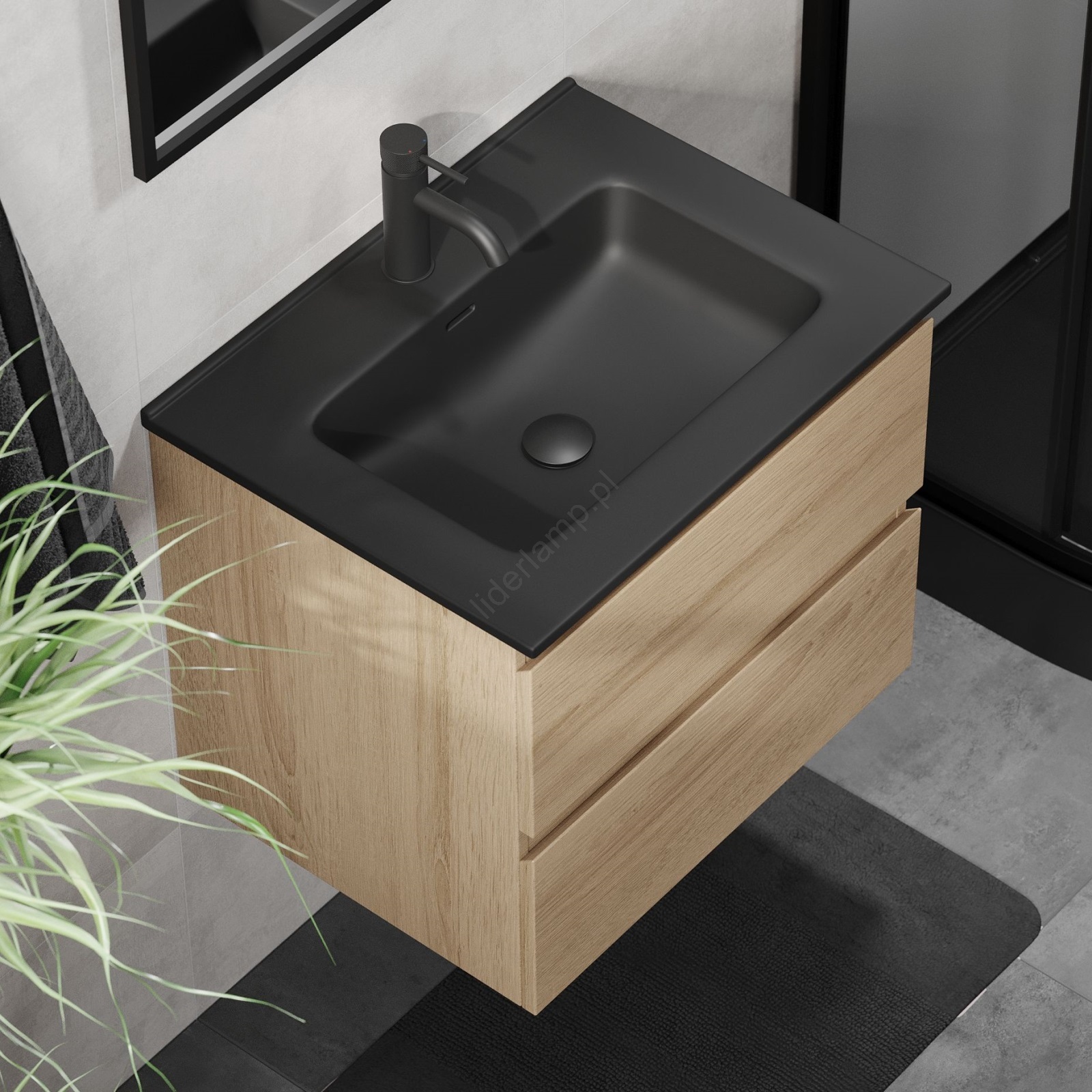 Szafka łazienkowa z umywalką CONOR 61 cm dąb/czarny
