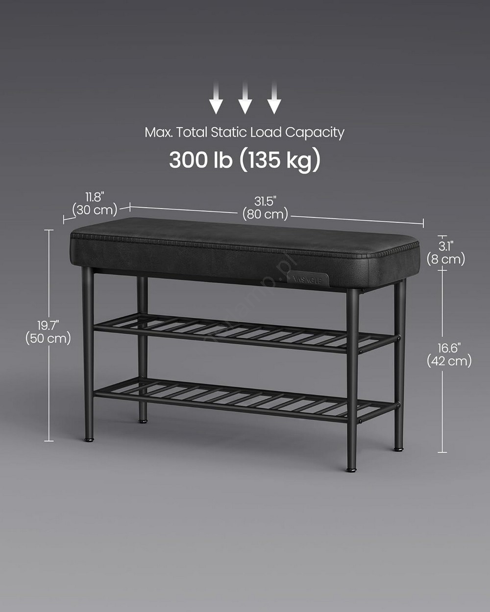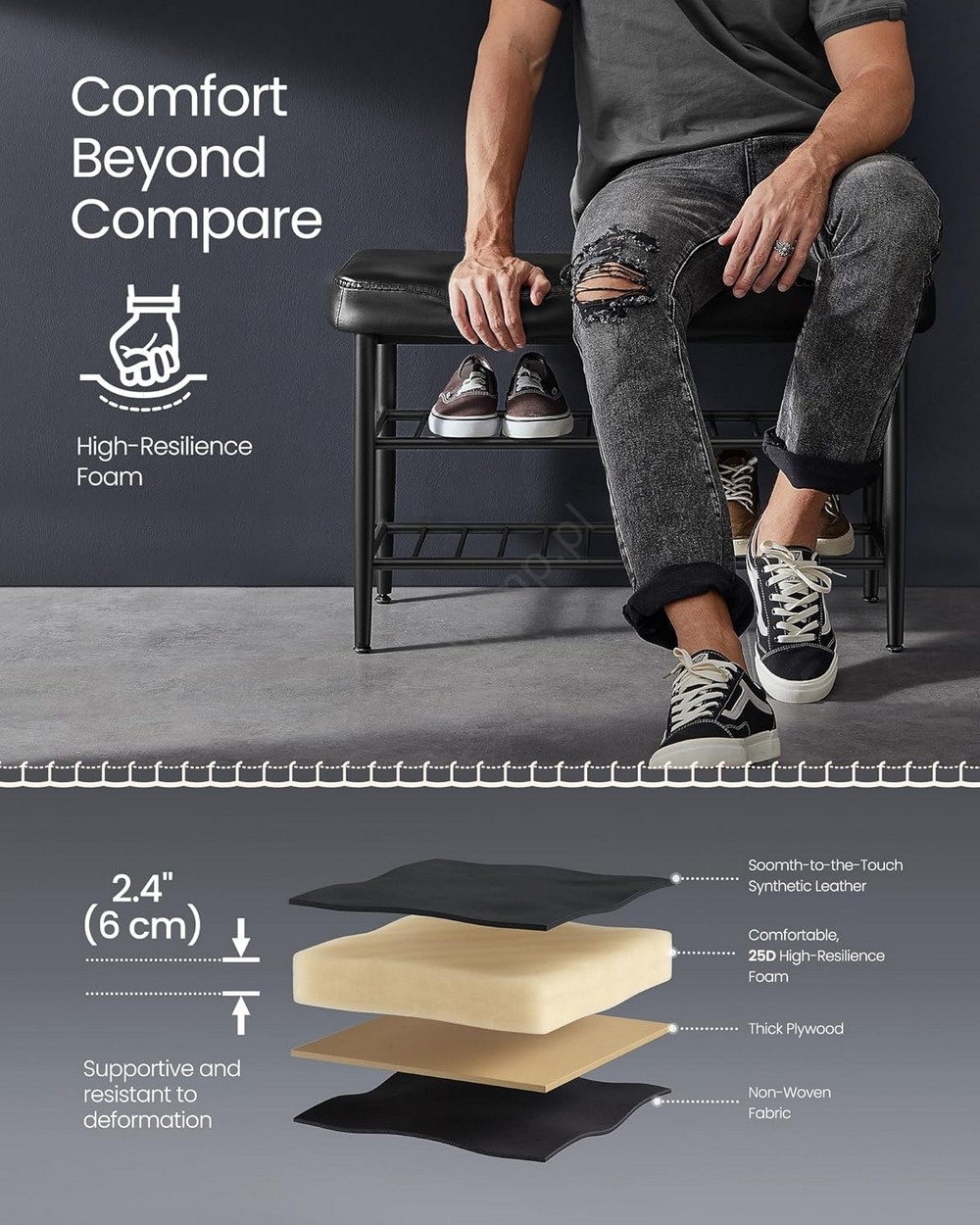 • Miękkie siedzisko z 8 cm pianki 25D, umożliwi wygodne siadanie i zakładanie oraz zdejmowanie butów.